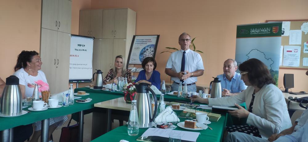 Pierwszym punktem była informacja o aktualnej sytuacji na lokalnym rynku pracy, którą zaprezentowała Pani Teresa Klimek - Dyrektor Powiatowego Urzędu Pracy dla PUP.