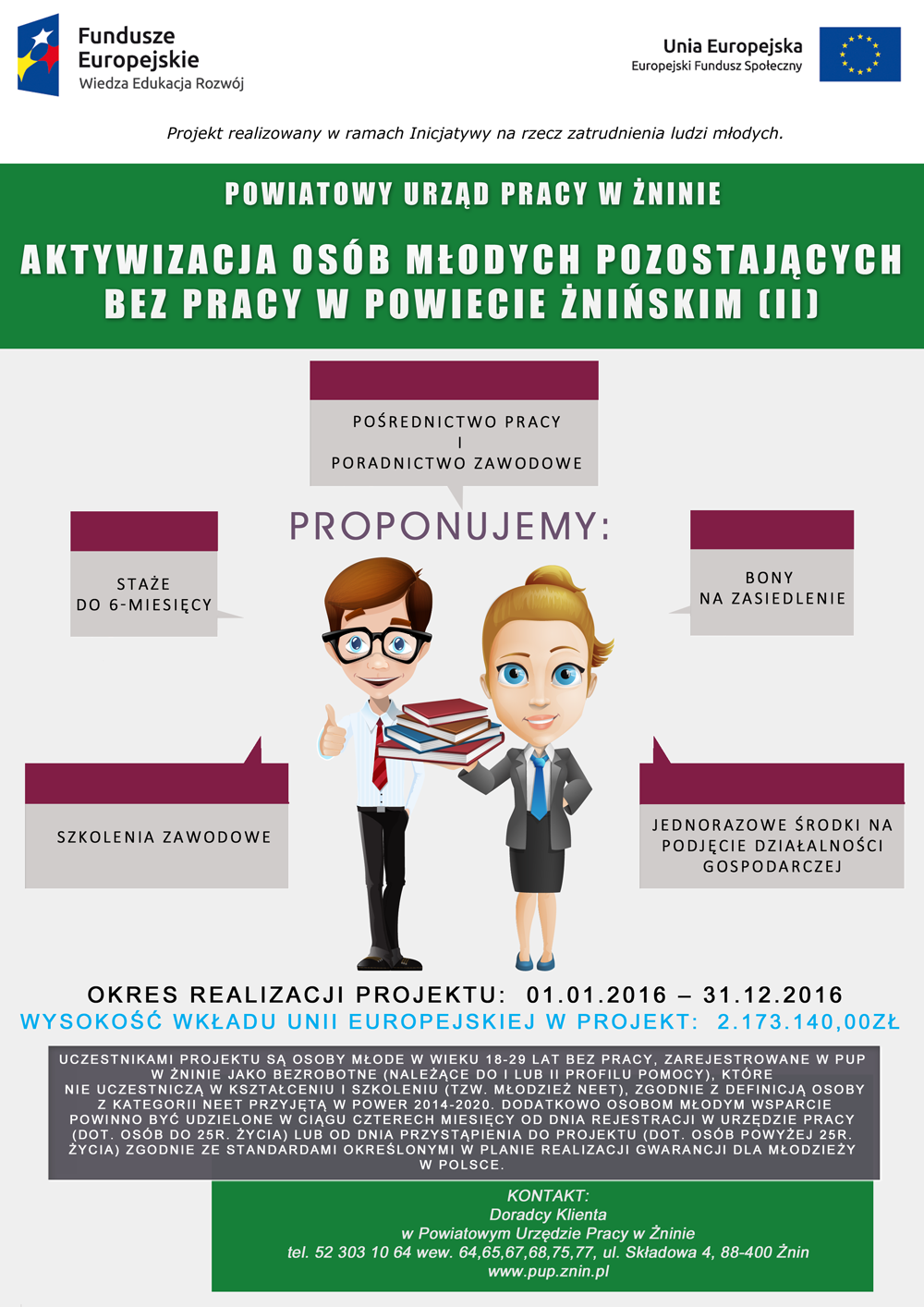 Tytuł projektu: „Aktywizacja osób młodych pozostających bez pracy w powiecie żnińskim (II)".